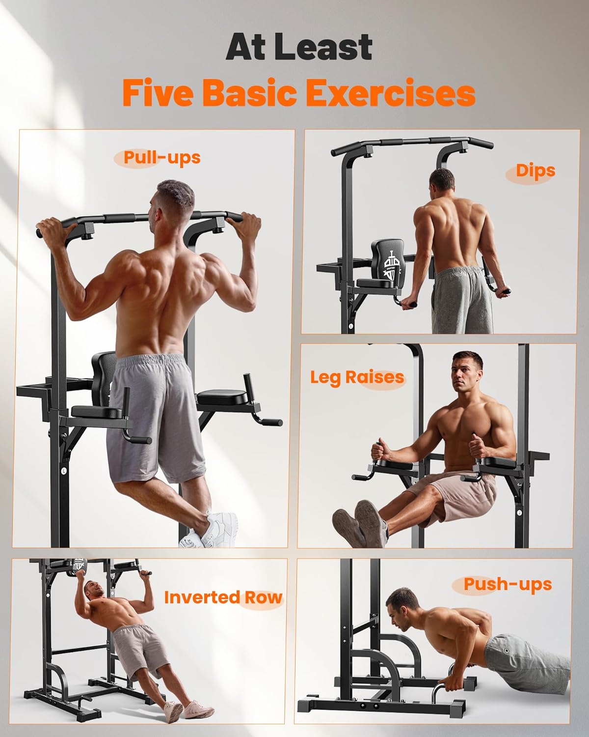 - 【Multifunctional Fitness Equipment】 A multifunctional fitness tower that supports vertical lifting of the knee, push-ups, dips and pull-ups to strengthen arms, abdomen, shoulders, chest and back for a stronger upper body.